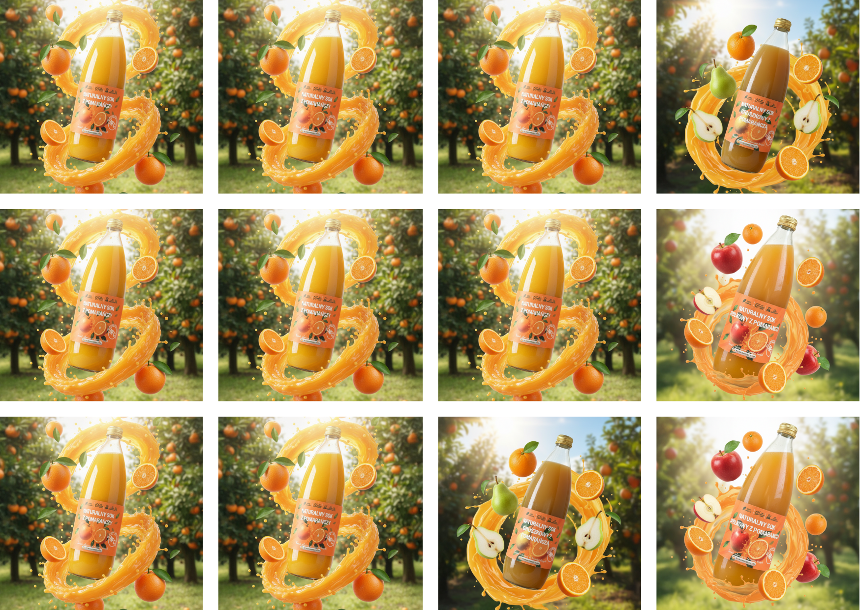🌞 Zestaw soków NFC — 8× pomarańcza + 2× pomarańcza-gruszka + 2× jabłko-pomarańcza