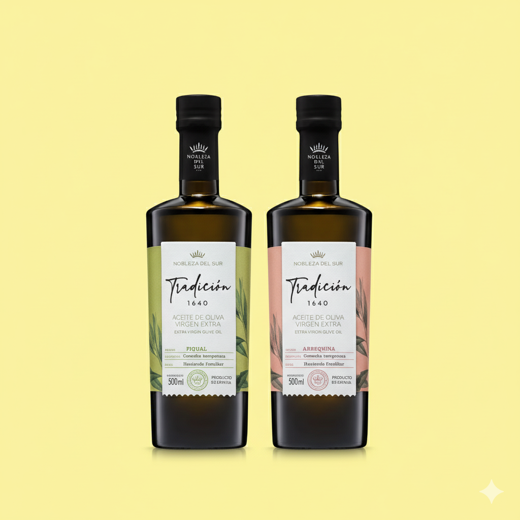 Zestaw VIP 2: zestaw oliw premium: Nobleza del Sur Tradicion 1640 – Picual & Arbequina (2 × 500 ml)